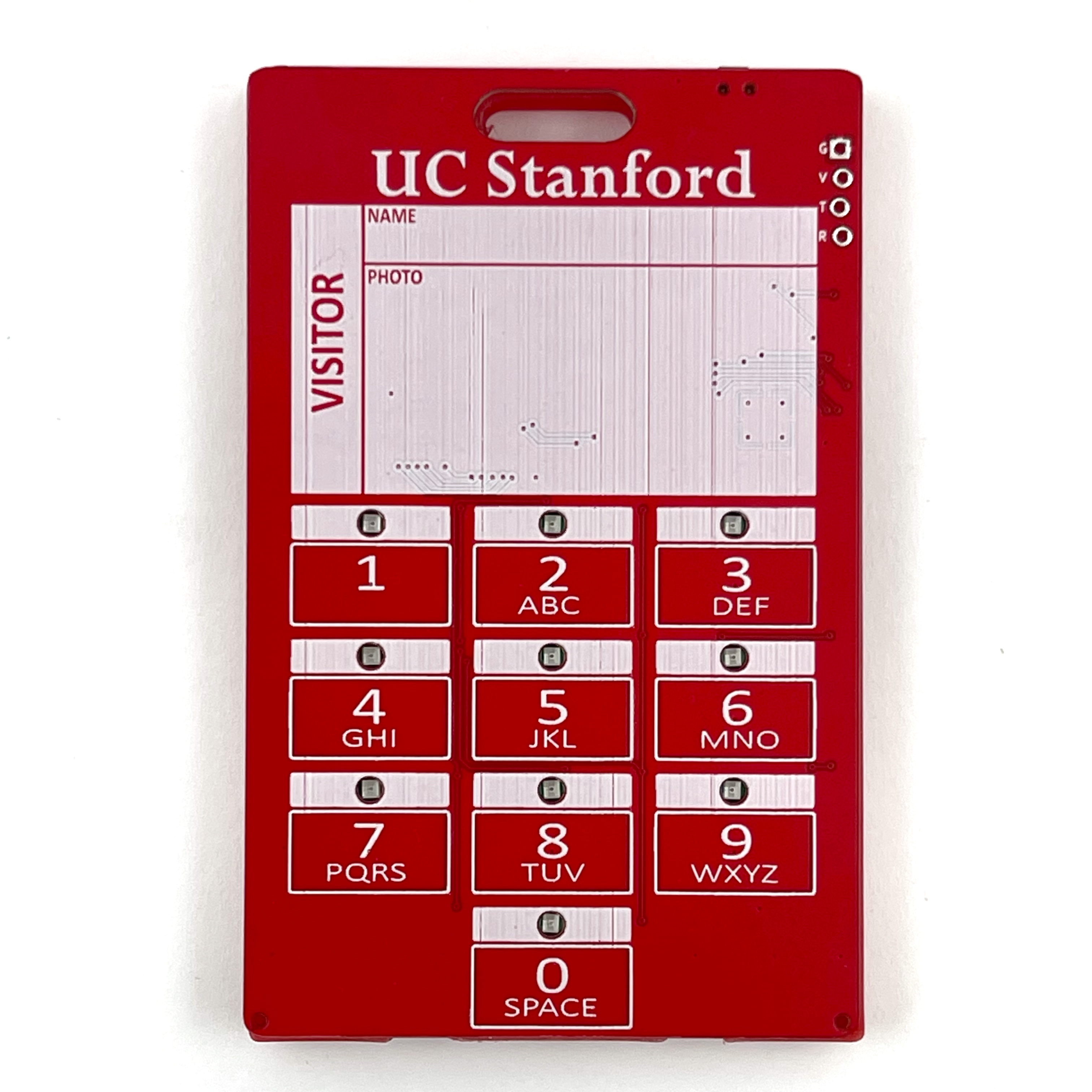 There is a tactile button on the top edge. This is the 'wake' button of the eChallengeCard. Pressing the button during a demo will put the puzzle back to sleep. You will know the puzzle has recognized the wake is active when all LEDs flash once. Pressing the button during an interactive challenge's 'clue' phase will flash the LEDs and then immediately skip to the 'answer' phase and wait for the user input. This may be helpful when attempting a challenge again and it has a lengthy clue. You will know the eChallengeCard is skipping to the answer phase when all of the LEDs are illuminated. Once you release the button, the LEDs will go out and the eChallengeCard will be ready for you to answer the clue.